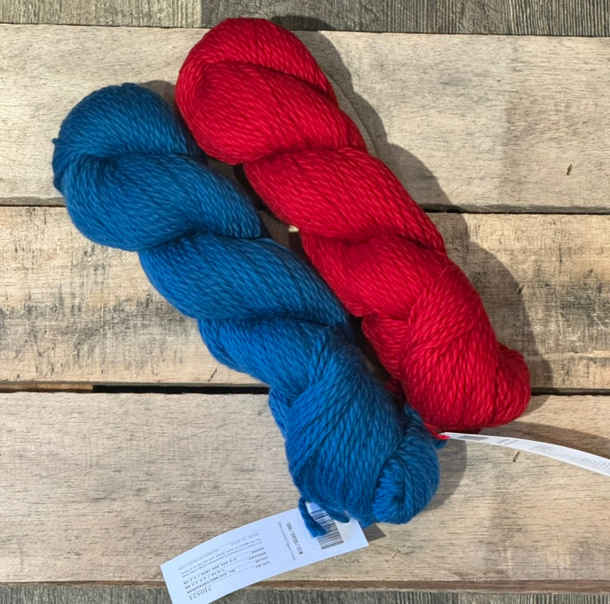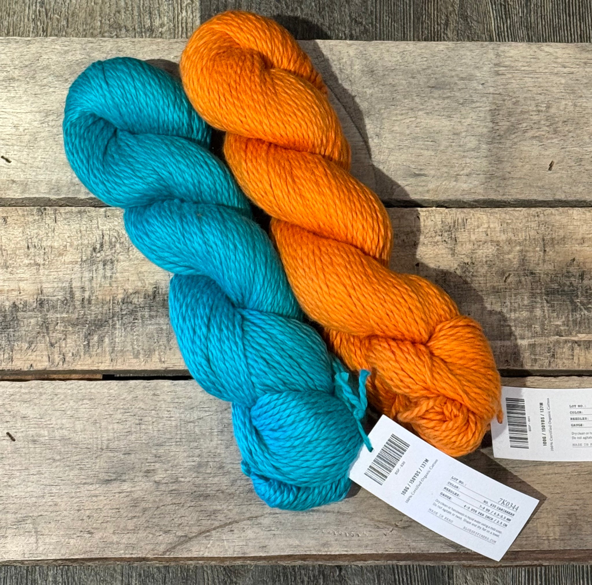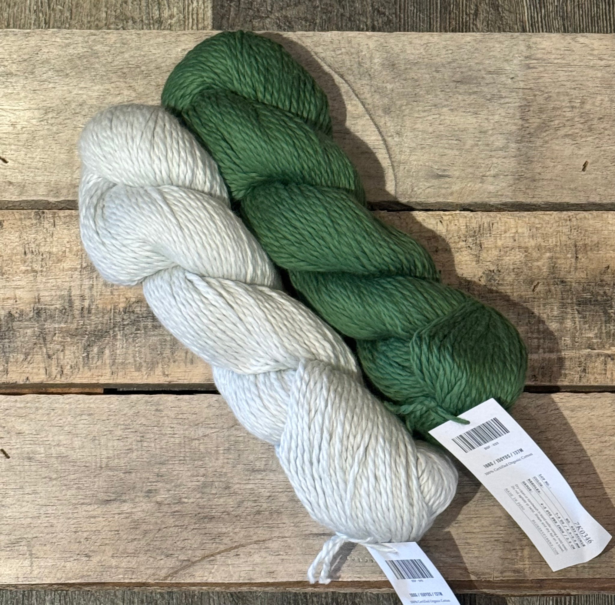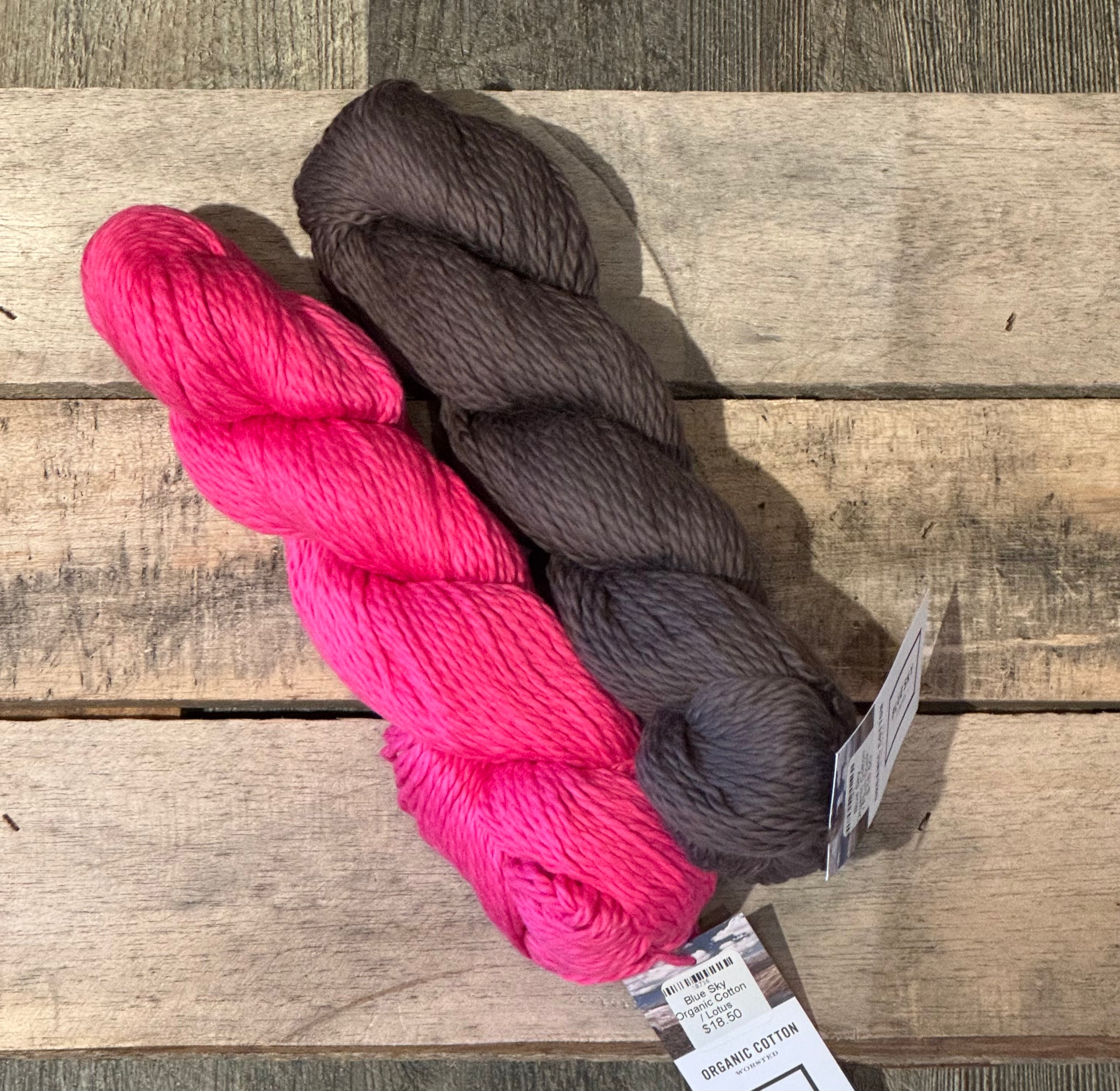 4 skeins of Blue Sky Organic Cotton Worsted in 2 contrasting colors